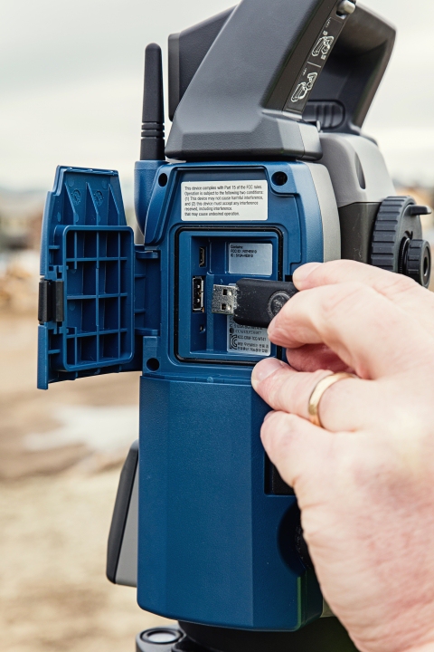 Интеграция с GNSS-приемниками. Благодаря этому имеется возможность осуществлять съемку по технологии Hybrid, что позволяет быстро получить координаты опорных точек. Подключение к приемнику осуществляется по Bluetooth или с использованием интерфейсов RS-232C и USB.